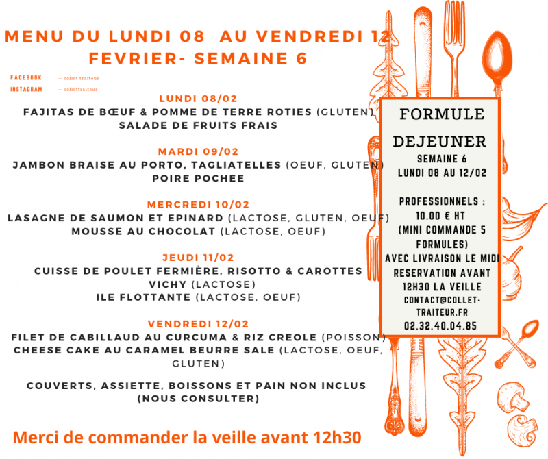 Vous pouvez commander vos plats au plu tard le jeudi 18h00 de la même semaine