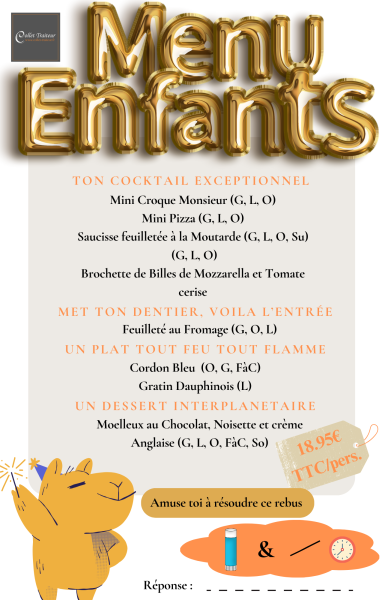 Venez récupérer votre commande directement à la boutique le 30 décembre pour passer un moment de convivialité avec vos proches. En parlant de proches, Collet Traiteur a tout prévu pour vos petits loulous avec un menu spécial enfants, parce que le gout des bonnes choses n'a pas d'âge.